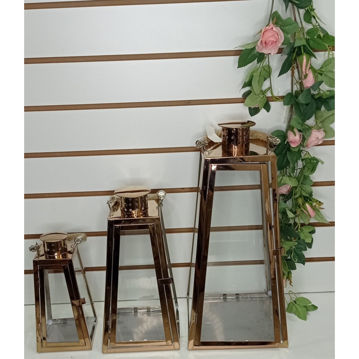 CONJ. C/ 3 PCS HL1117 LANTERNA EM INOX METALIZADO A48XL23CM