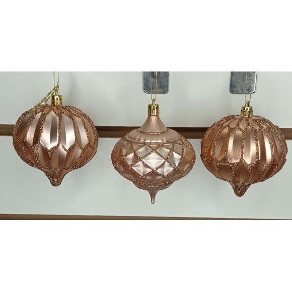 BOLA AB418 NATALINA C/3 ROSA FOSCA C/ GLITTER FORM. BALÃO A8CM