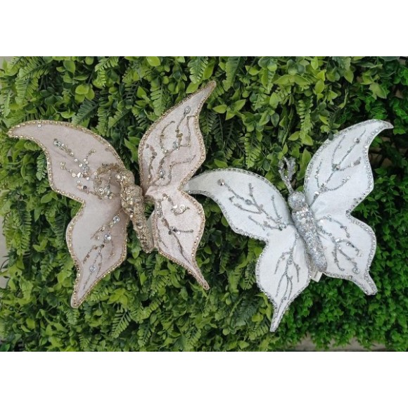HASTE FN183 DE BORBOLETA DOURADA/PRATA 30CM